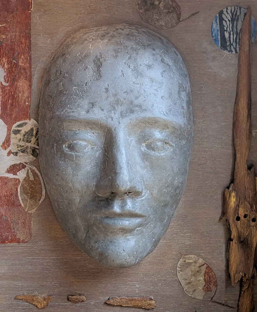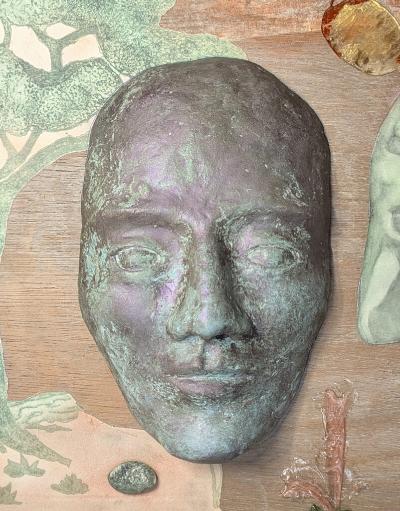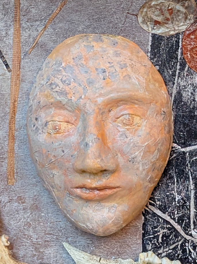 This newly finished art series in six drawers features variations on wistful solemn faces. I cast these faces in several different materials, from molds of two my own original sculptures. Only one drawer has no human face; instead it features a large rat! I quite love my rat drawing. And all the drawers contain prints, natural & found objects, printmaking, sculpture, and drawings.