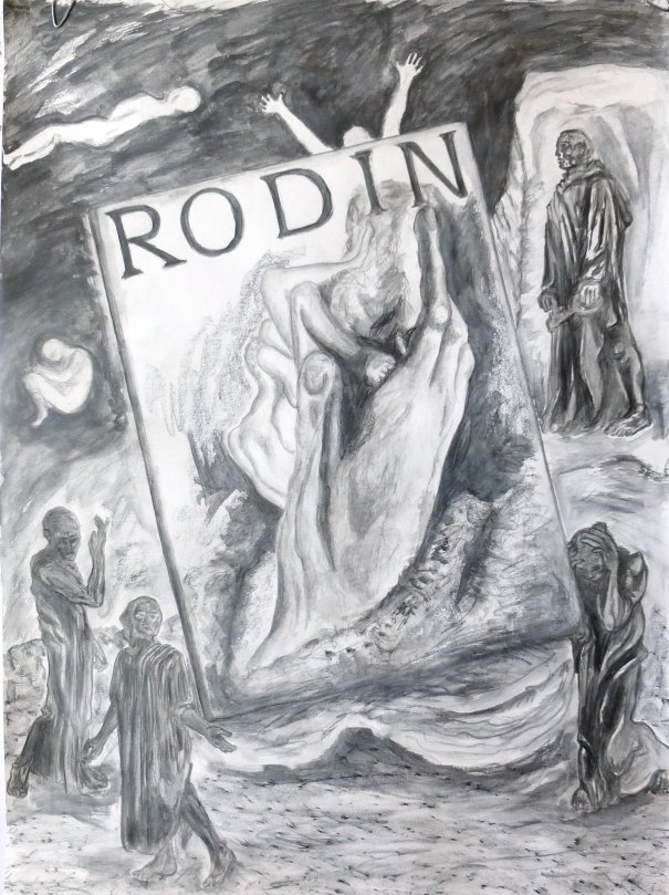 Current work… P.T. Artist Sandra Stowell Posted on April 4, 2015 by ptartistApril 4, 2015 I have added a bit to my Rodin Exorcism piece, and at left is a digital manipulation of a new sketch inspired by a piece of sculpture at Northwind Arts Center NWDC exhibit. The sketch is only 8″x5″, the Rodin piece is 18″x24″.
