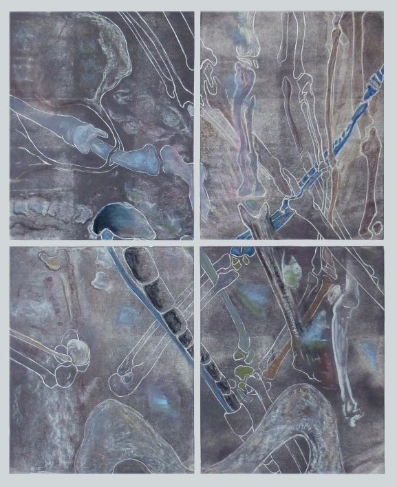 A Window onto the Walking Bones P.T. Artist Sandra Stowell Posted on April 12, 2014 by ptartistApril 12, 2014 A continuation of the Walking Bones series, based on four lino cut plates (now recycled).