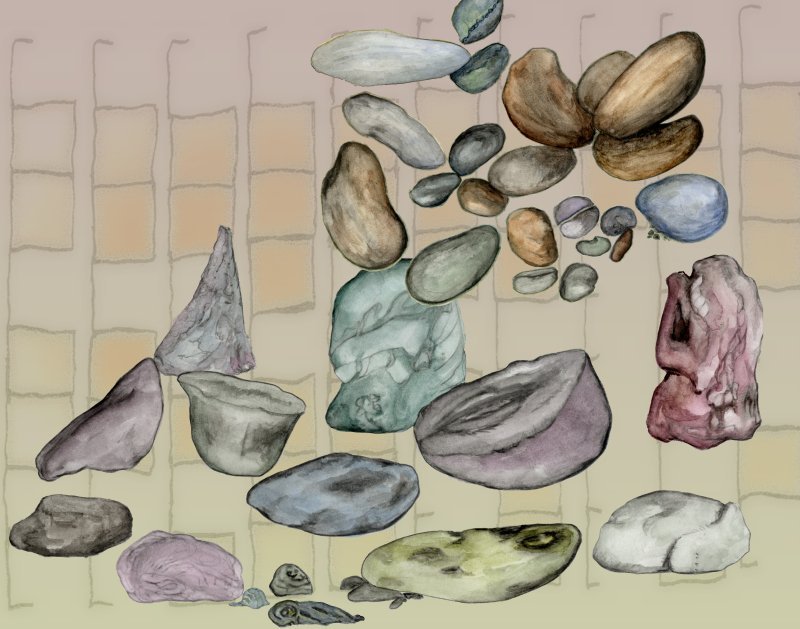 I can’t resist doing a little digital alteration to this peculiar watercolor. My concept was very vague: to work with animal print & seed imagery, with the notion of scenes, details or something inside the animal prints. I expect to play with this idea more, and perhaps it will develop into a larger finished piece or two. As to the digital play: I applied a histogram stretch, then a topo effect, to create more drama than is feasible in a watercolor sketch!