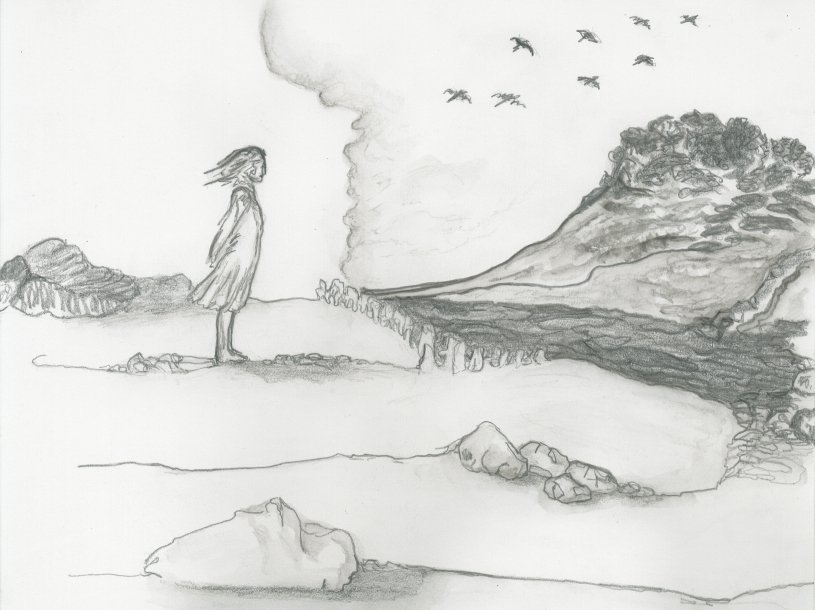 To the original drawing, I added some water soluble graphite to darken and enhance (I hope :-): the modified drawing is shown at left. The poly litho plate used for the print was from the earlier version of the drawing. I used water soluble graphite on the burnt umber ink print also, but a bit differently from on the pencil drawing. The graphite becomes a second color on the print. In the final version at right, I added a touch of colored pencil. Stop me now! 🙂