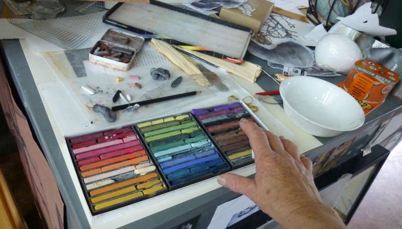 I am a mixed media artist with a special interest in sculpture, drawing, digital transformations, photography and printmaking. I use pencil, water soluble graphite, charcoal, colored pencil, pastels, Conté crayon, ink, paint. And also found objects, silk threads, cheesecloth, beeswax, driftwood, cement, stone, and more! I use my own work as elements in both physical and digital collage, and my computer, scanner and archival ink jet printer are as much artists tools as my pencils, brushes, chisels, files and power tools.