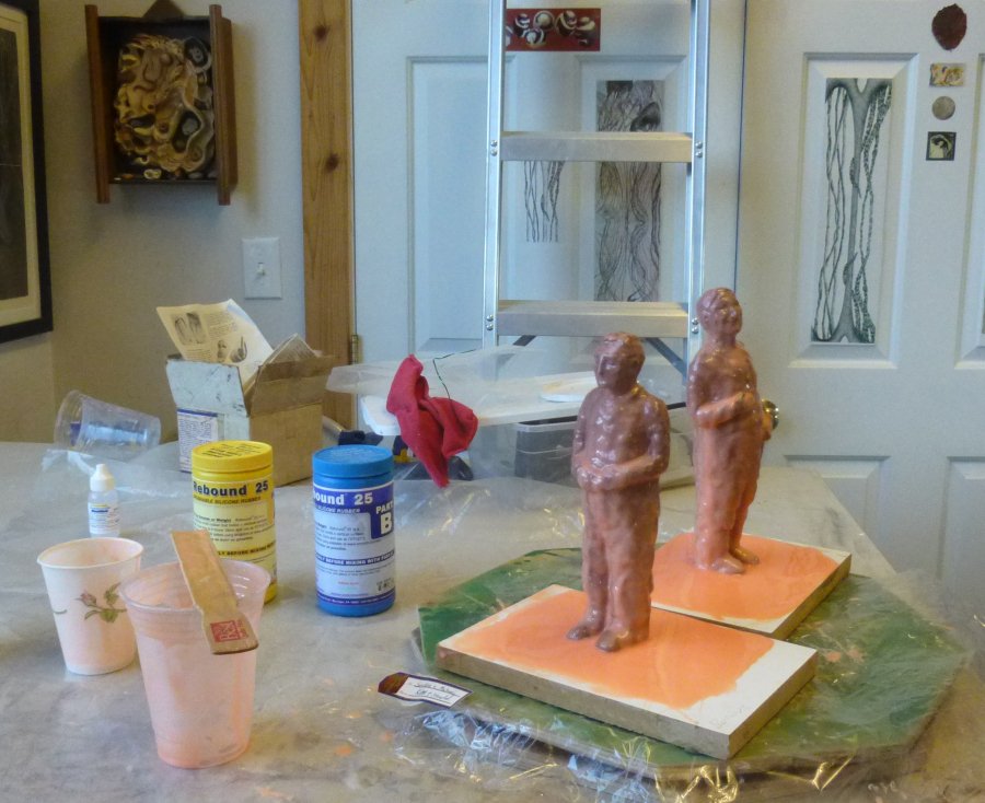 Finally got all my ducks in a row: attached figures, sealed, released, and first coat of silicone!