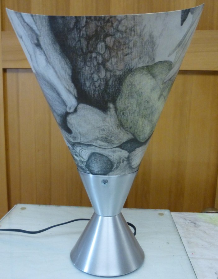 I have used this technique to create wall sconce shades that feature photo portraits of community members; these are installed in our community common house.
