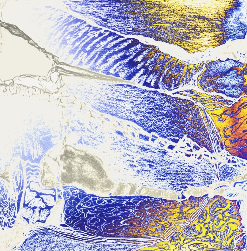 This has multiple printing of a poly litho plate over those four linocuts I am currently obsessing with. Not sure if this will resolve into a finished work: I over inked the lino plates, and switched the position of the top two plates, so this may never satisfy! TBD