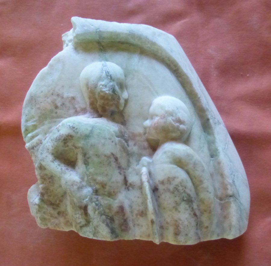 Tortured agonizing: how to securely mount & display this delicate alabaster carving! I want to secure it to be hung on the wall: the idea being to partially embed the alabaster in epoxy in order to stabilize the faults in the stone & at the same time attaching it to a wood? backing for hanging. But what does this look like? How big? What color? Or pattern? Should it be in a frame or just simple? Decisions, decisions!
