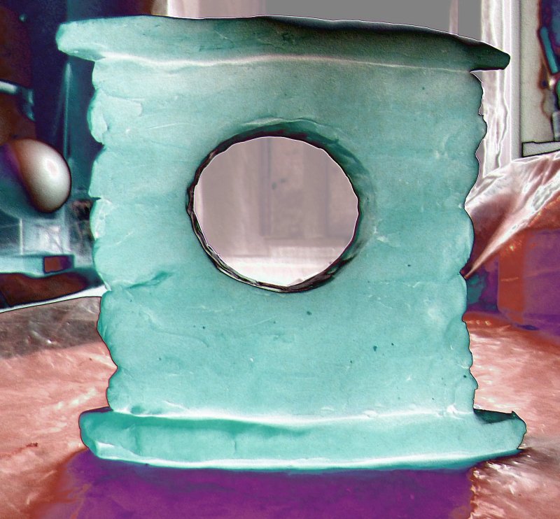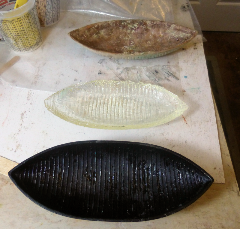 My “Blue Ruins” mold has now been involuntarily retired after five casts. It was such a compromised mold that I am delighted to get any good casts from it! It tore today when I removed it from the second concrete cast (digital foil of the photo above right).