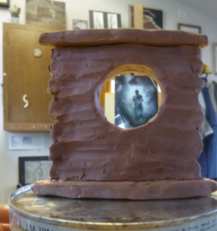 I have been working on several epoxy casts: a clear moon snail with some embedments (below right), another clear sleeper with an embedded face, and using the extra epoxy on each mix up to make smaller items. Some of these are shown below and above left. I have also used the clear epoxy to mount a small two piece residue resin cast from 1995: the kneeling figure above. I have a full 3-D cast of this, and a couple of half/relief casts, but this one was made with insufficient leftover resin, so the head & arms are incomplete. I find it quite interesting, so I kept it: apparently for this very piece of acrylic, test scratched as a plate for printing!