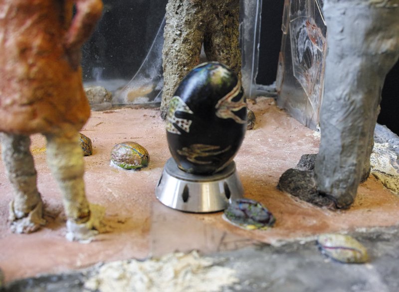 It turns out that this piece is not a game piece at all. Rather this Conversation is set in a sculpture park! Changes have been made, and I think it is almost there. It is much more pleasing to me now, and I am nearly ready to permanently install the egg sculpture in the center, and to add a few final details.