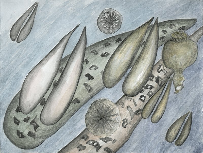 I can’t resist doing a little digital alteration to this peculiar watercolor. My concept was very vague: to work with animal print & seed imagery, with the notion of scenes, details or something inside the animal prints. I expect to play with this idea more, and perhaps it will develop into a larger finished piece or two. As to the digital play: I applied a histogram stretch, then a topo effect, to create more drama than is feasible in a watercolor sketch!