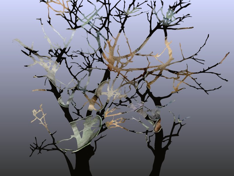 Digital combinations: at left I combine two watercolors, digitally altered, over a gradient, at right scanned a tree stencil,& layered with scanned watercolor rocks, again layered over a gradient background. There is a bit more to it than this: selecting, trimming, rearranging, etc. to create something altogether new.