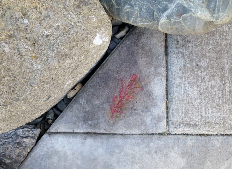 I embedded a few twigs & leaves in five spots of my new “freeway”: the concrete sidewalk between the house & my studio that lets me charge back and forth safely even in the dark. The concrete was pretty hard & I was in a hurry, so I did not get much done. but these are fun and I am adding color & resin. It won’t last very long outside, but it amuses me for now. The imprint of a salal leaf may be the best one!