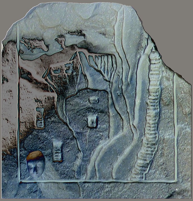 This is a cast “reproduction” of my stone carving “Blue Ruins”, a carved Bluestone paver. The paver is extremely hard, and required a lot of work with diamond power and hand tools. I polished some areas and left others rough.