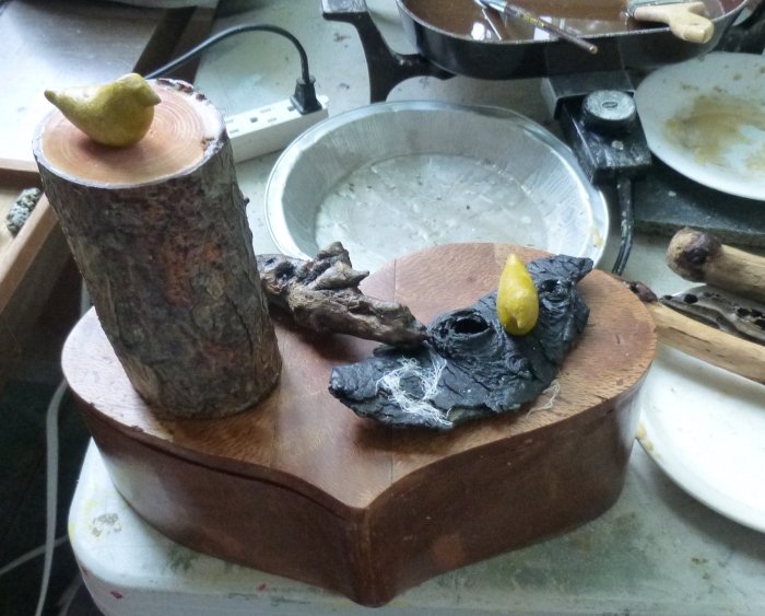 Next thing I know, I am desperately working too, on new clay, wax & driftwood sculptures. Good grief!