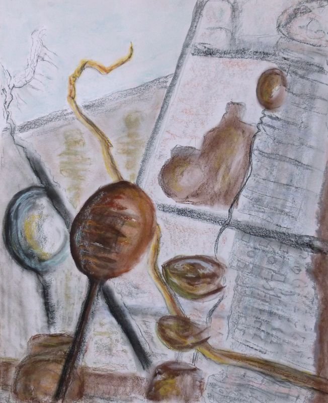 Further work P.T. Artist Sandra Stowell Posted on August 29, 2015 by ptartistAugust 30, 2015 A fast conceptual sketch of shadows from my studio window, done months ago, continued to interest me, so I worked on it further: draft 2 at left, draft 3 on the right. Enough already?