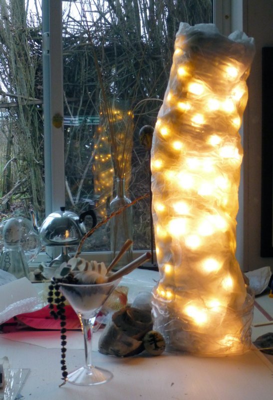 In the studio P.T. Artist Sandra Stowell Posted on January 8, 2016 by ptartistJanuary 9, 2016 Artist’s martini Lamp tower