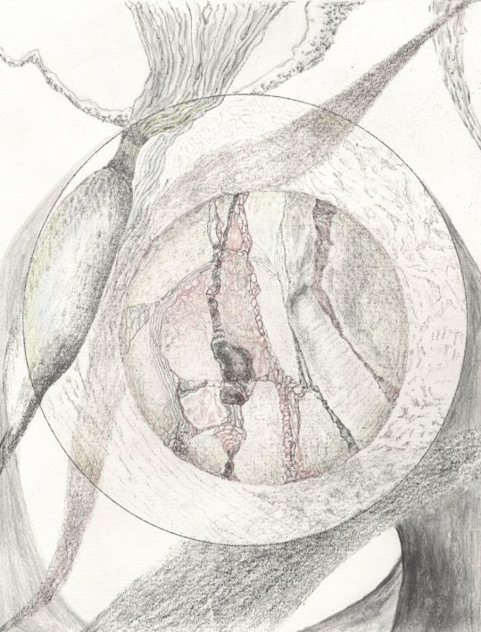 So I am an artist who used printmaking, but I will never really be a printmaker! The print showing a circle inside a circle, with lots of detail (Through a Lens 🙂 has grey colored pencil and water soluble graphite added to increase the contrast. The double “brain” image has had the background digitally “cleaned” of fingerprints & smudges!