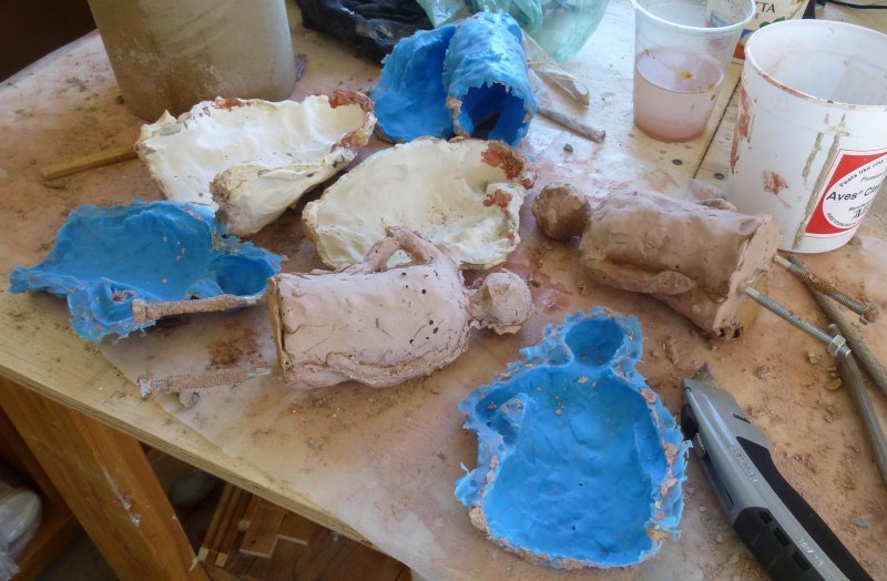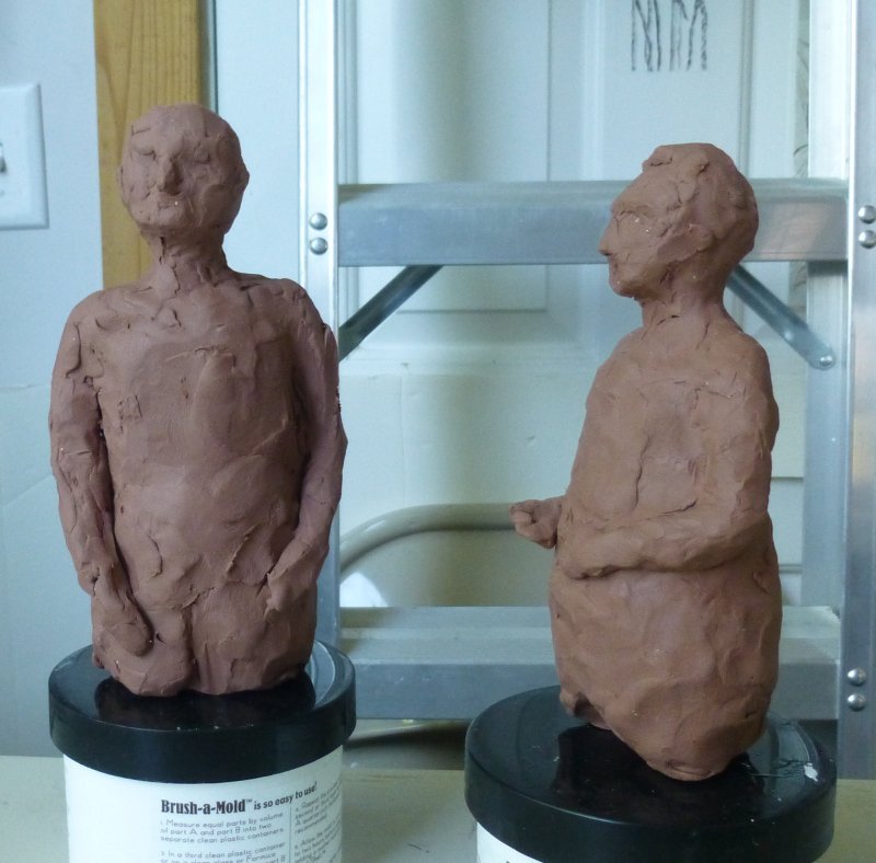 Today’s work: two more people from the first two molds, and more people (clay only today).