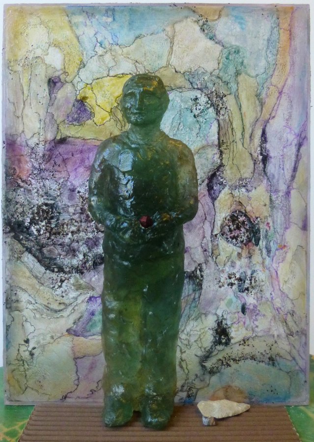 The textured and colored backdrop is an acrylic box open in the back. I plan to add led rice lights in the box behind the figure, and to create a base (ground for the figure to stand on). And maybe extend the clear acrylic at the sides too, around the figure… all TBD.