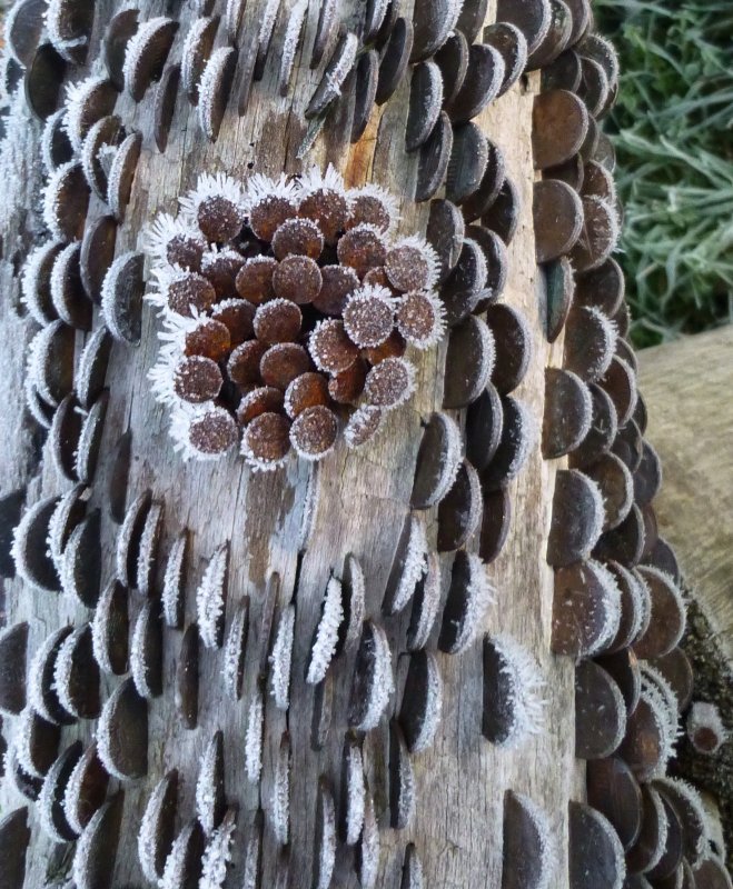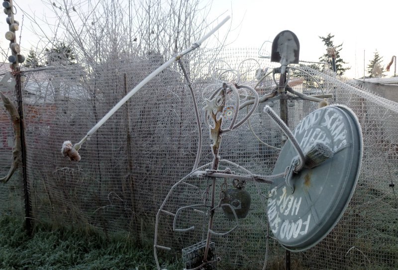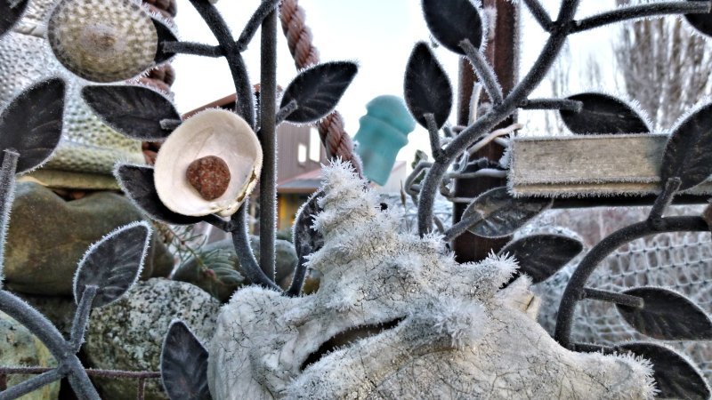 Photos P.T. Artist Sandra Stowell Posted on January 4, 2016 by ptartistJanuary 4, 2016 Winter frost and visiting birds enhanced my yard art on New Years Day: