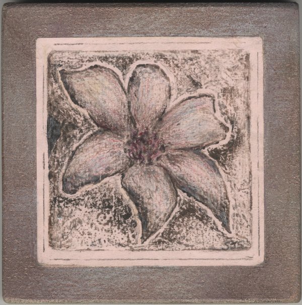 Pink Flowers P.T. Artist Sandra Stowell Posted on September 4, 2018 by ptartistSeptember 4, 2018 Two “low-tech” mat board plate prints on pink proofing paper: now worked in colored pencil & mounted onto 4.5″ squares.