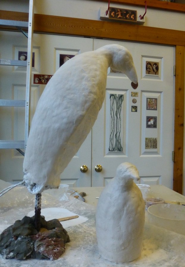 Progress P.T. Artist Sandra Stowell Posted on February 28, 2018 by ptartistFebruary 28, 2018 Working on my paper clay models for the “Birds in Nest” positives for casting, and enjoying the light as the late afternoon sun peeks through the windblown rain clouds!