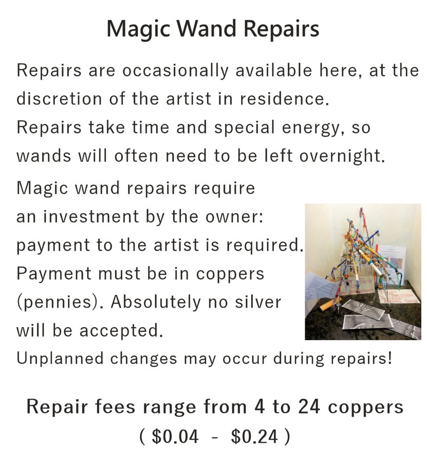 Magic wands were selected and distributed last Sunday, and later the same day I realized that I had not anticipated the consequences of this project. There was a knock on the door of my studio, and a wand owner brandished her wand in both hands (i.e. in two pieces:-)). So there is a new sign on my studio door, and one repaired wand waiting to picked up by the young magician:
