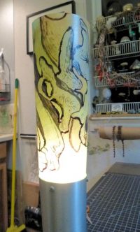 I have used this technique to create wall sconce shades that feature photo portraits of community members; these are installed in our community common house.