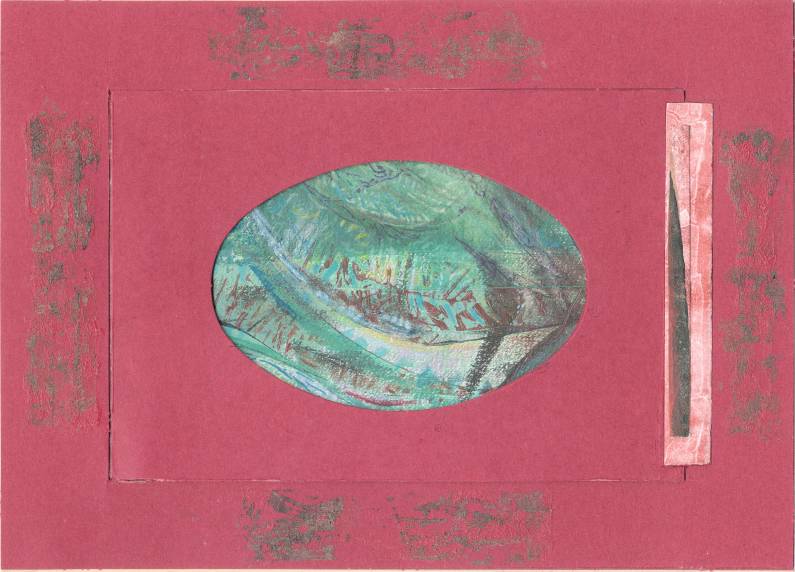 This is mostly about finishing… three older monoprints with more work, and #1 and #3 are newly cropped to feature bettter design, focus, or detail. The last reworked piece is pastel on black canvas, now given a color boost and the addition of blacker black!